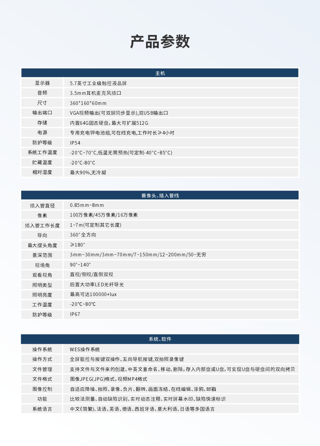 探頭直徑:0.8-8mm可定制