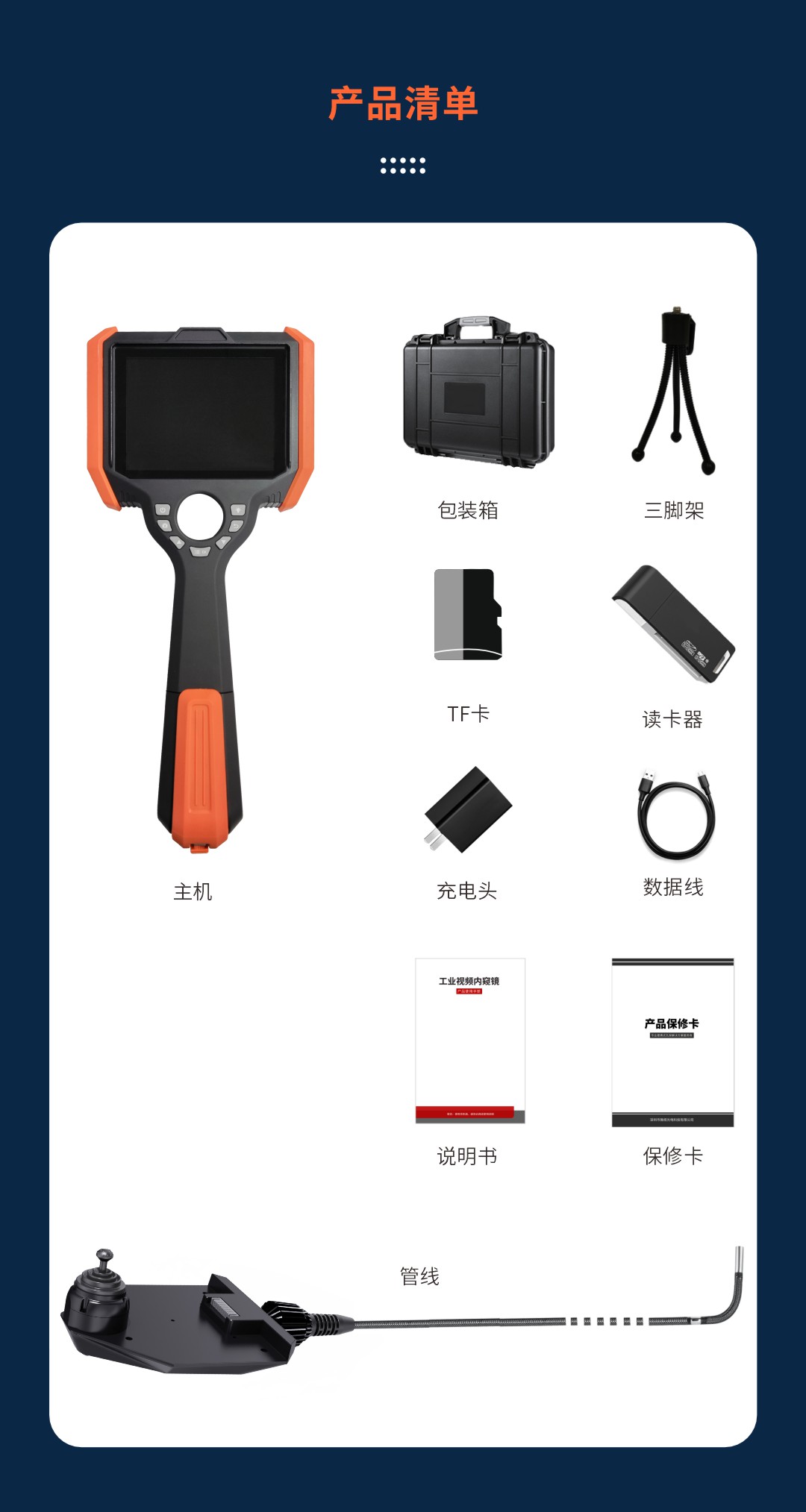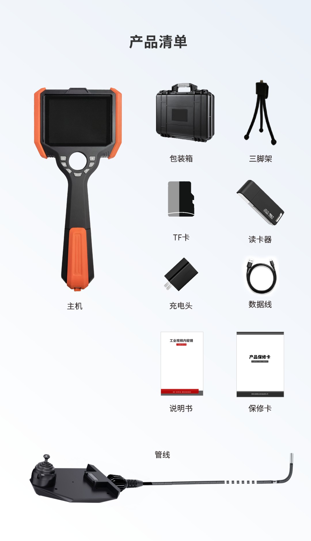 優(yōu)勢特點:快速更換管線、百萬像素、360°旋轉(zhuǎn)探頭、光纖照明